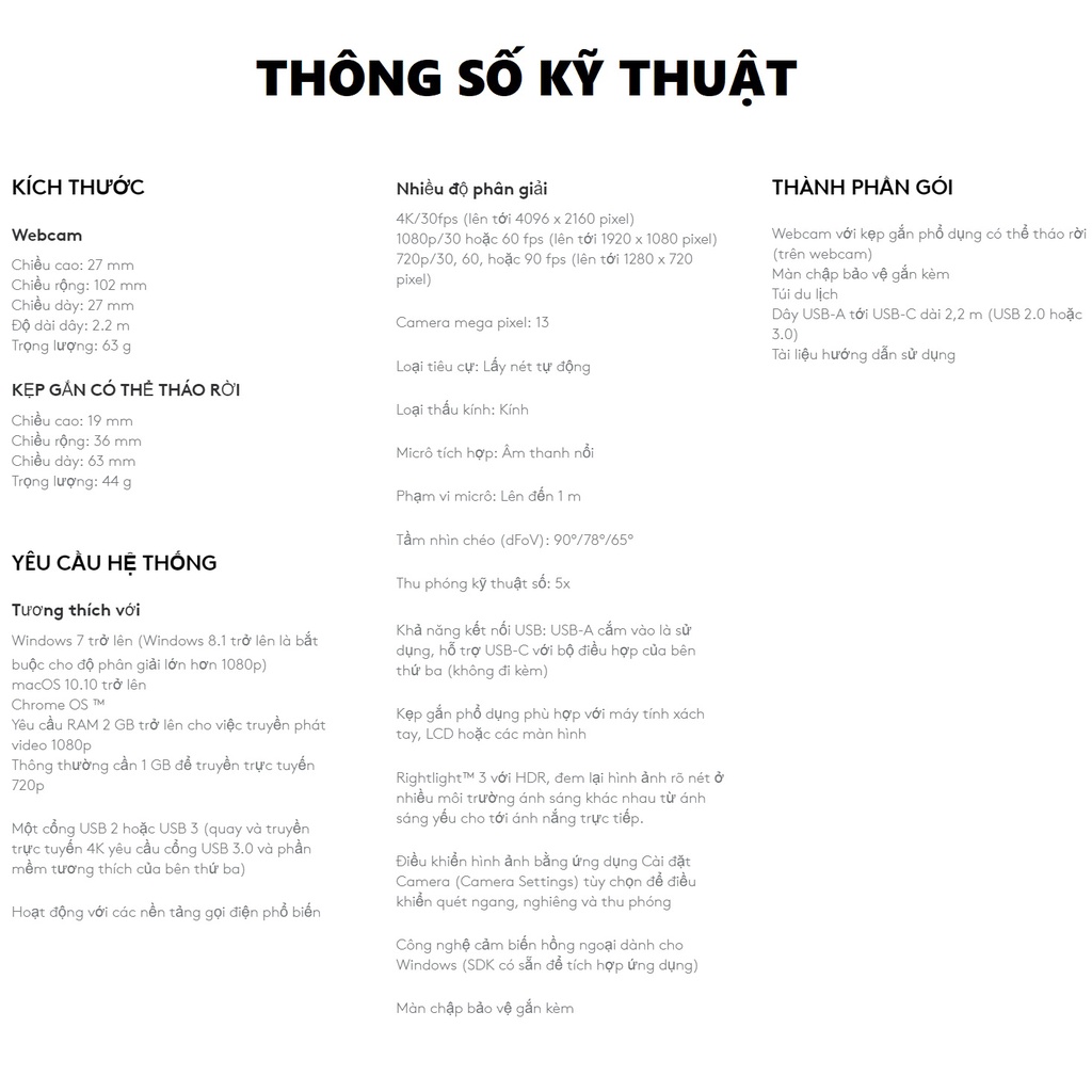 Máy tính & Laptop > Phụ Kiện Máy Tính > Webcam || [Mã 44ELSALE1 giảm 5% đơn 3TR] Webcam Logitech Brio 4K PRO - Logitech BRIO Webcam with 4K Ultra HD Video & HDRCòn hàng