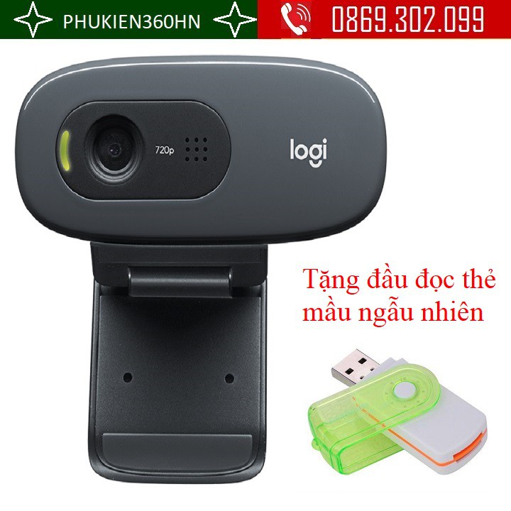Webcam Logitech C270 cho máy tính PC, Laptop, Học online + Tặng đầu đọc thẻLưu ý: Webcam Logitech có 2 mẫu logo là Logi và Logitech hiển thị trên sản phẩm, shop sẽ giao hàng ngẫu nhiên 1 trong 2 mẫu Logo tùy theo từng đợt về của sản phẩm.