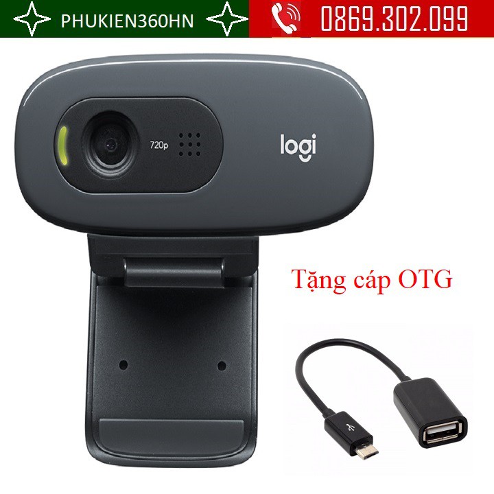 Webcam Logitech C270 Tặng cáp OTG cho điện thoạiLưu ý: Webcam Logitech có 2 mẫu logo là Logi và Logitech hiển thị trên sản phẩm, shop sẽ giao hàng ngẫu nhiên 1 trong 2 mẫu Logo tùy theo từng đợt về của sản phẩm.