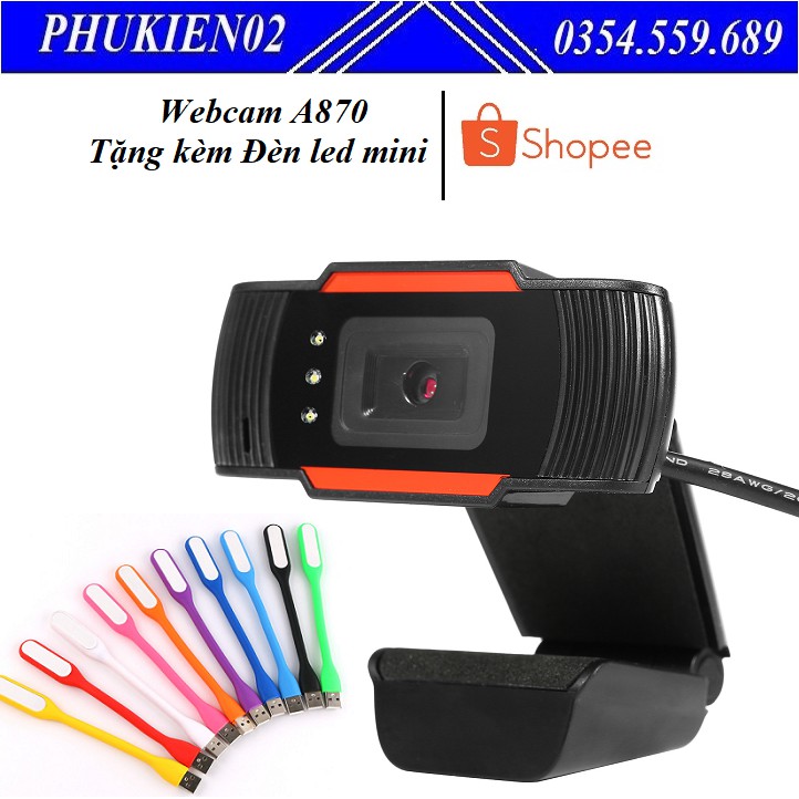 Webcam Máy Tính Độ Phân Giải Cực Nét A870 Tặng kèm Đèn led mini cổng USB-siêu sáng - Hàng chính hãng