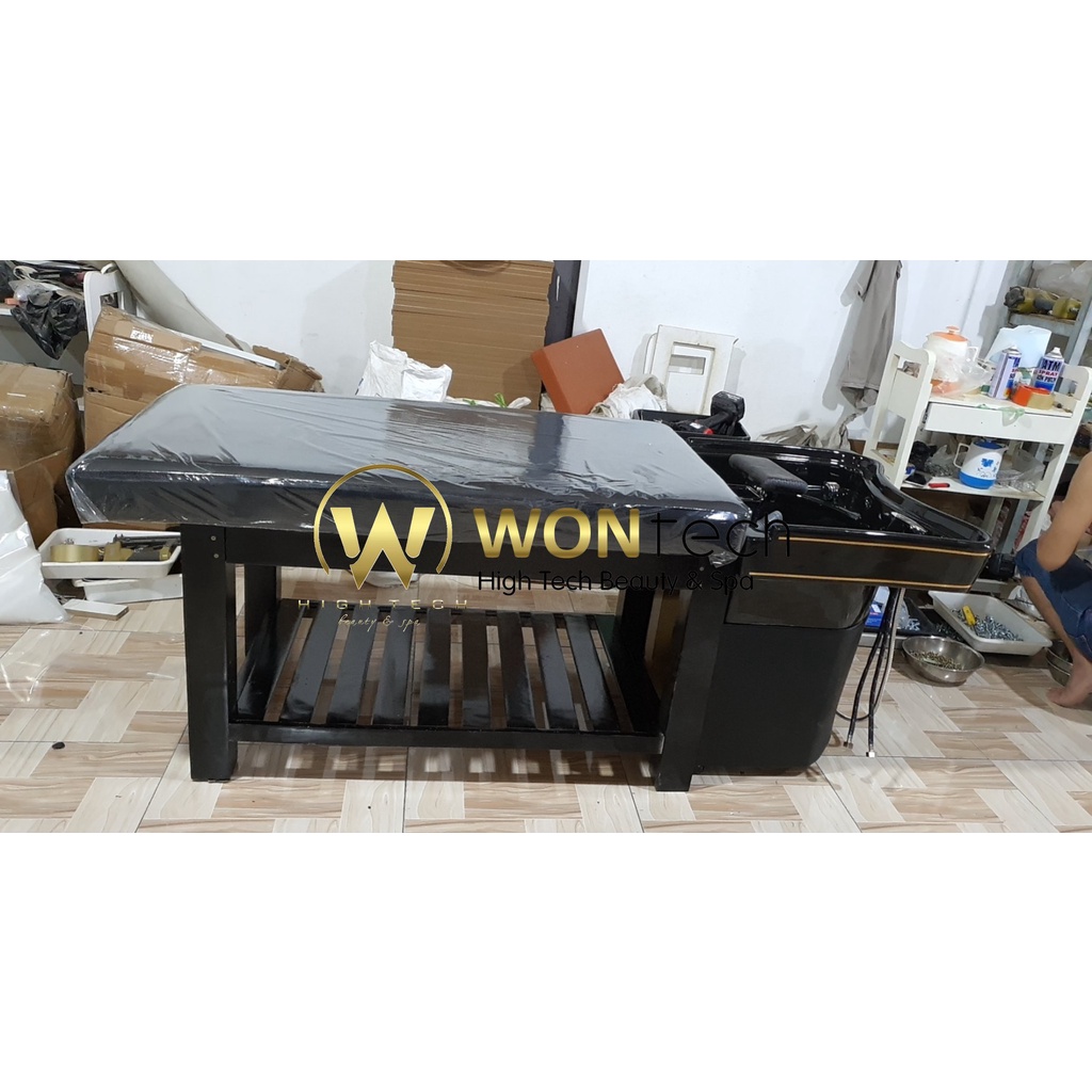Giới thiệu [WONTECH - NOW SHIP] Giường gội " CHÂN GỖ" 2in1 massage , bồn " SỨ ĐEN " TAI THỎ.