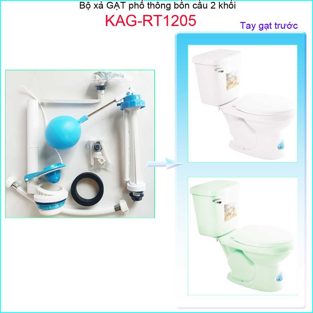 Bộ xả bàn cầu gạt cấp phao xanh KAG-RT1205, bộ xả nước bồn cầu gạt xả cầu gạt Dococer trọn bộ 2 khối cầu phổ thông