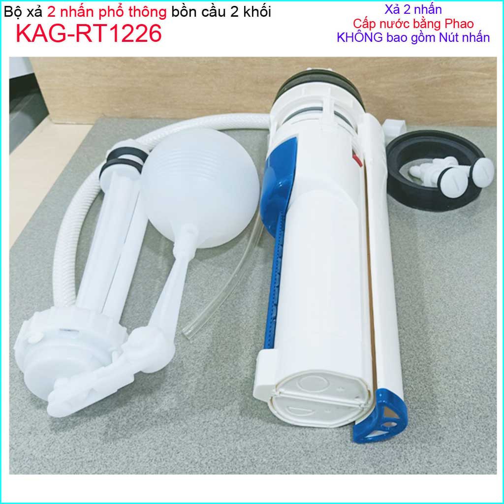 Bộ xả bồn cầu két nước rời 2 nút nhấn Tasaco, trọn bộ xả 2 nhấn bàn cầuKAG-RT1226 cấp Phao trắng dùng vùng nước phèn
