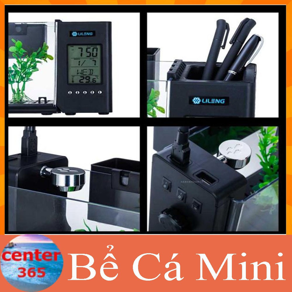 Chưa hết Bể cá phong thủy mini còn có bộ lọc đáy giúp cho chiếc bể có thể dễ dàng được làm sạch, giảm thiểu bất cứ khả năng hư hỏng nào. Và bạn sẽ không phải đau đầu suy nghĩ xem nên đặt anh bạn này ở đâu, kích thước gọn có thể vừa vặn với gần như mọi chiếc bàn làm việc mà không làm bạn cảm thấy chật đi chút nào. Ngoài ra còn những chức năng khác được tích hợp thêm như lịch, đồng hồ, báo thức, nơi để bút và các dụng cụ văn phòng khác.