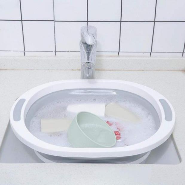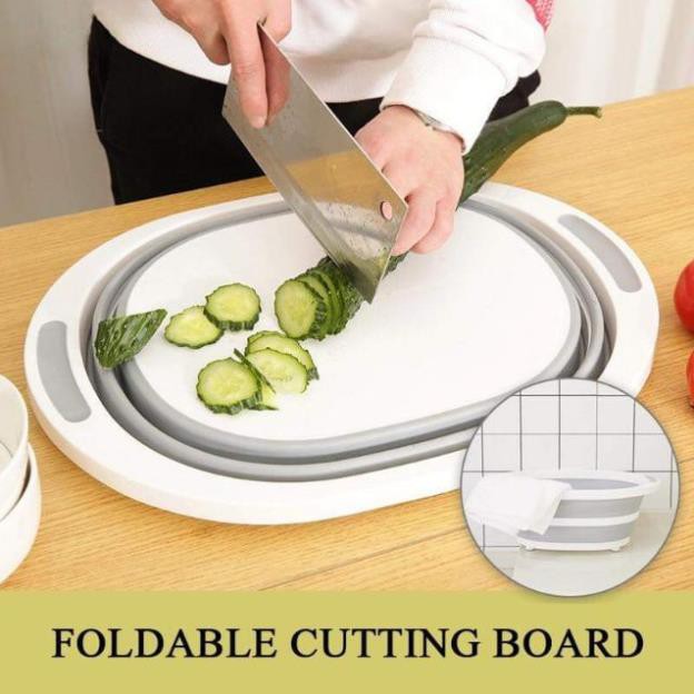 - giảm bớt các dụng cụ nhà bếp cồng kềnh vì chậu có thể gấp gọn treo lên và còn thành chiếc thớt cho bạn giảm bớt 1 thứ đồ