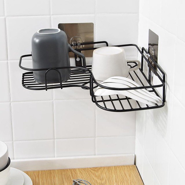 [XẢ KHO+FREE SHIP] KỆ GÓC INOX DÁN TƯỜNG ĐEN VIỀN UỐN LƯỢN TIẾT KIỆM KHÔNG GIAN
