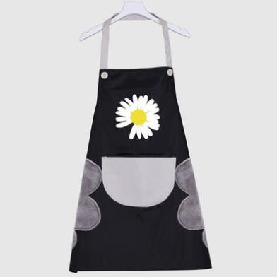 - Trên tạp dề được in họa tiết hoa cúc, tạo điểm nhấn và bắt mắt cho người nội trợ