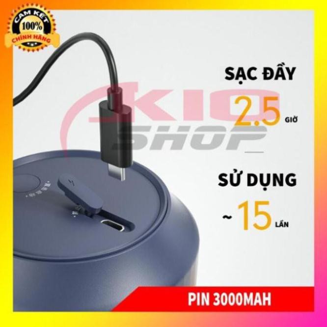 1. Máy xay Sinh tố mini tiện lợi hoạt động không cần cắm điện, pin sạc 3000 mAh 1 lần sạc sử dụng được 15 lần.