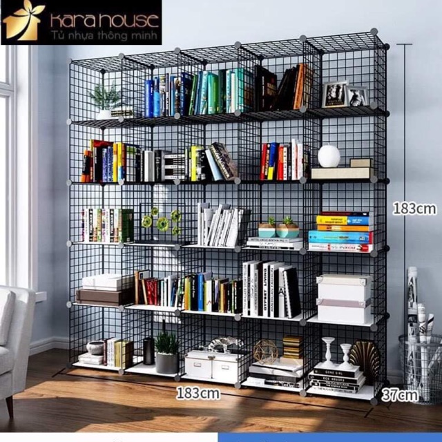 Tủ ghép lưới sắt thép đa năng hiện đại để sách, decor, trưng bày, trang trí mọi không gian