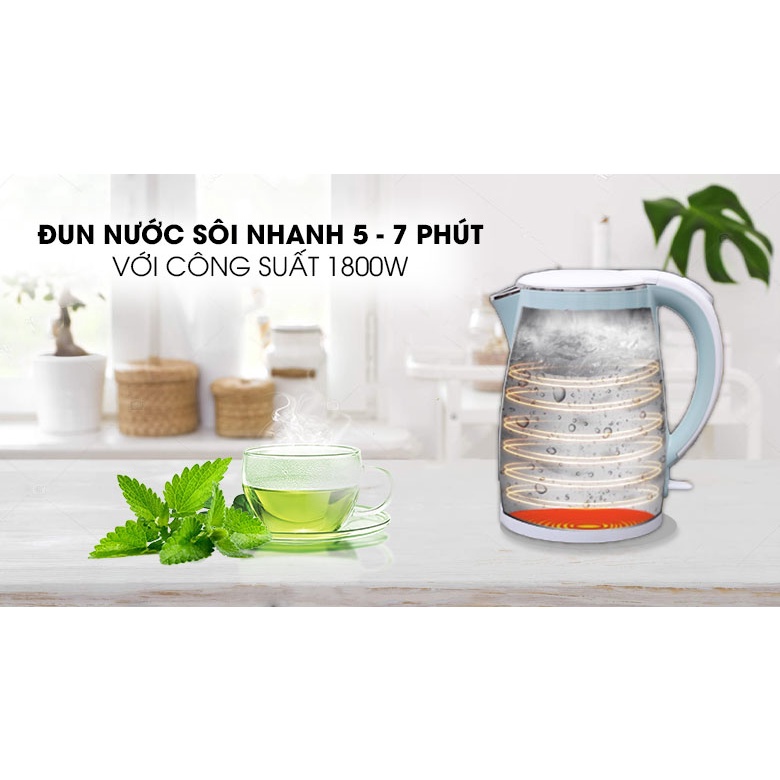 Công suất 1800W, mâm nhiệt phẳng giúp đun nước sôi chỉ trong 5 - 7 phút