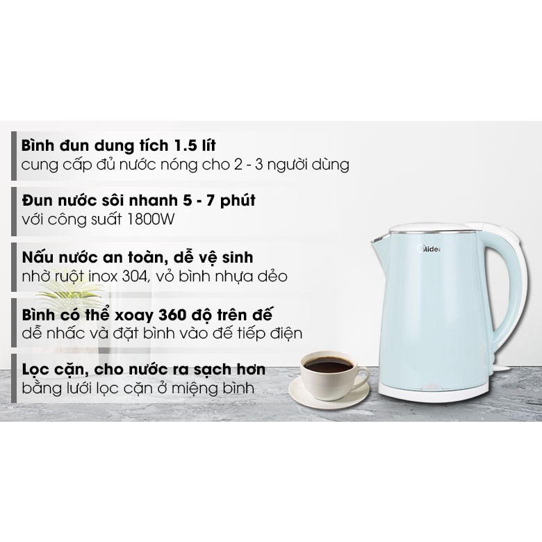Thương hiệu: Midea | Xem thêm các sản phẩm Bình đun siêu tốc của MideaMô tả ngắn