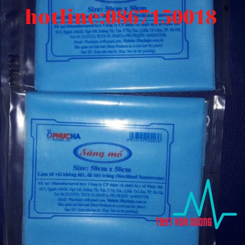 thiet bi y te hoa xuong có địa chỉ số 12 ngách 2/2 ngõ 2 phương mai đống đa hà nội sdt:0867150018 XĂNG MỔ CÓ LỖ VÀ KHÔNG LỖ 50X50CM PHÚC HÀ , SẢN XUẤT BẰNG VẢI KHÔNG DỆT SỬ DỤNG CHO CÁC TIỂU PHẨU Các loại sang mổ: không lỗ, lỗ tròn, lỗ vuông.- Vải không dệt mịn màng và ít sợi bông nên an toàn cho bệnh nhân và nguy cơ lây nhiễm từ sợi bông là rất thấp.