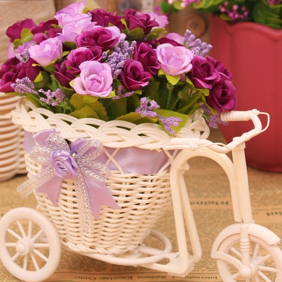 Nhà cửa & Đời sống > Trang trí nhà cửa > Hoa trang trí || Xe đạp và giỏ hoa - hồng tímCòn hàng
