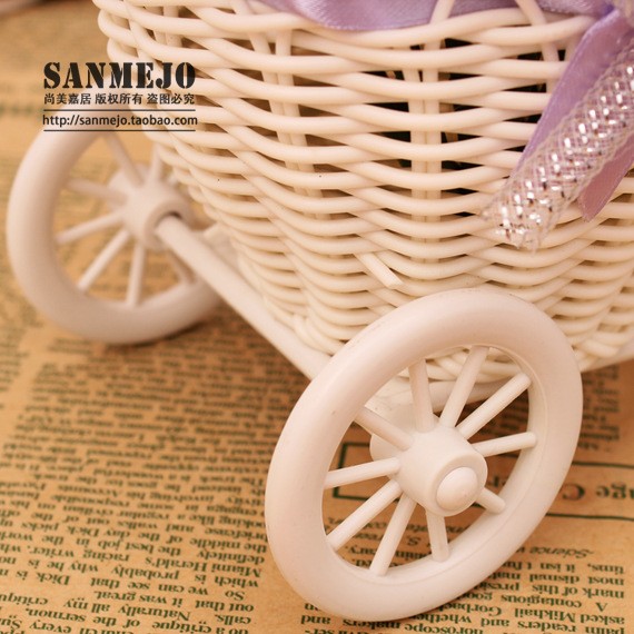 Kích thước: cao 20cm, dài 21cm, độ rộng xe 11cmChất liệu: hoa lụa, xe đạp giả mây