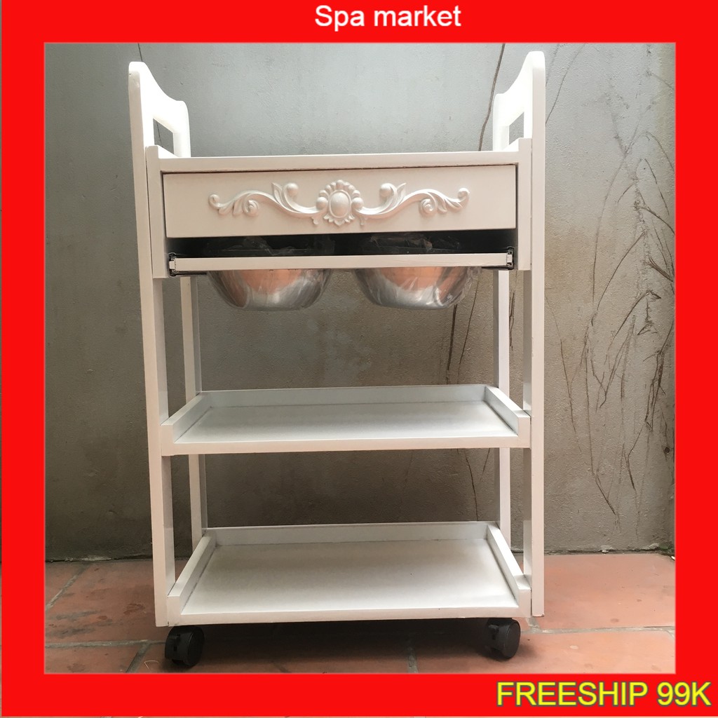 ✳️Xe đẩy gỗ, để đồ spa là sản phẩm không thể thiếu dành cho các spa để thiết bị và các dụng cụ thẩm mỹ, có 4 bánh xe đẩy rất nhẹ nhàng, kệ nặng và chắc chắn với lớp sơn trắng bền đẹp phù hợp cho không gian Spa thẩm mỹ viện✔️Kích thước 30-50-80 cm