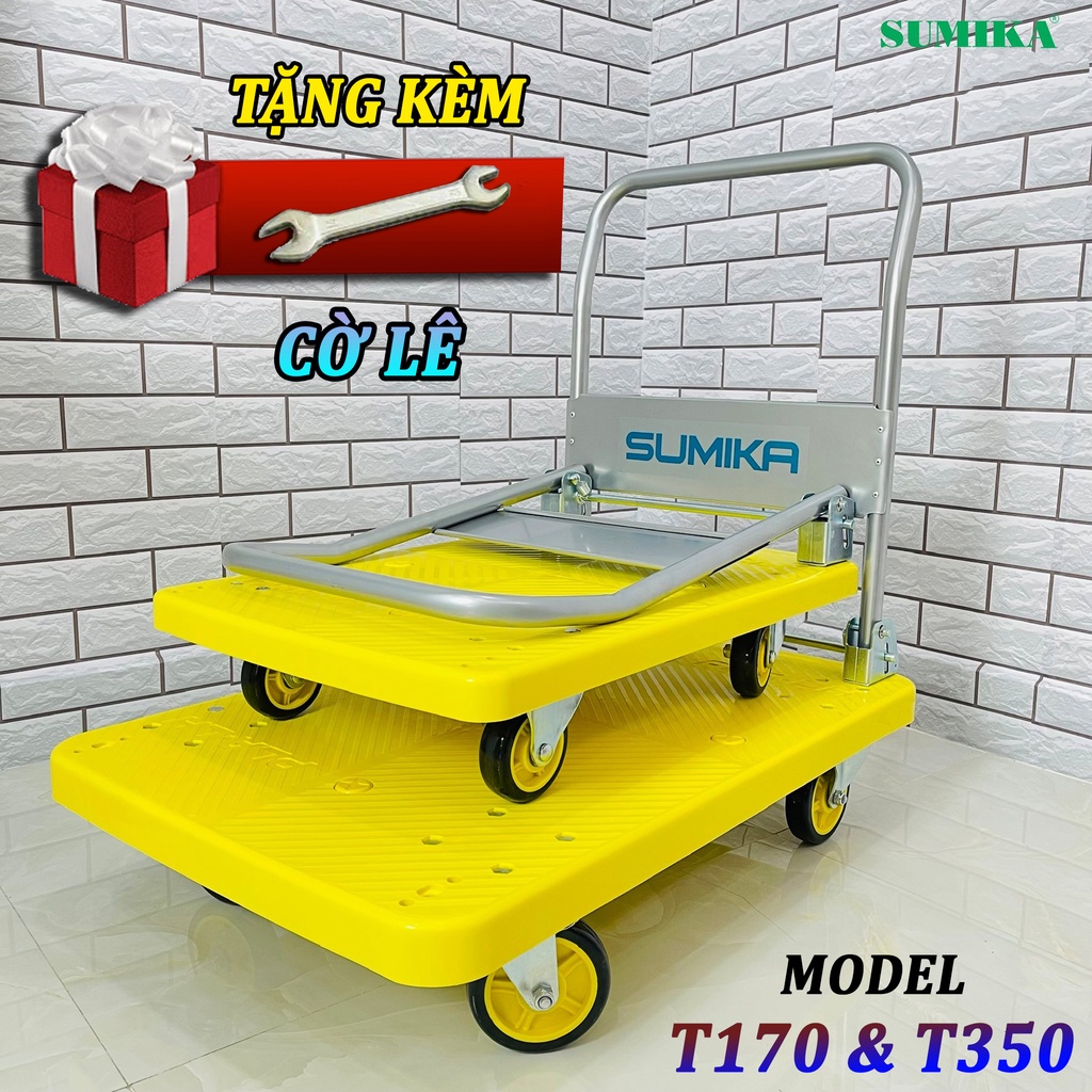 Xe đẩy hàng sàn nhựa tay cầm gấp gọn chính hãng Sumika T170 & T350 (bảo hành 2 năm) xe kéo hàng