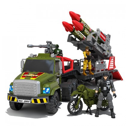 Chiếc xe tải siêu ngầu chở theo bộ giàn phóng tên lửa uy lực, chiếc xe mô tô cơ động thần tốc, cùng các anh chiến sĩ dũng cảm sẽ sát cánh cùng các bạn nhỏ kể nên những câu chuyện hoành tráng khác nhau theo trí tưởng tượng diệu kỳ của bé