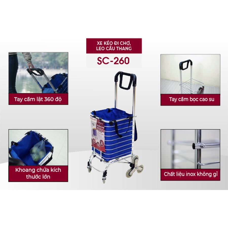 Xe đẩy hàng gấp gọn đi chợ- xe kéo hàng đi chợ siêu thị leo cầu thang FUJIHOME SC-260[ HÀNG NHẬP KHẨU- BẢO HÀNH 1 NĂM TOÀN QUỐC ]