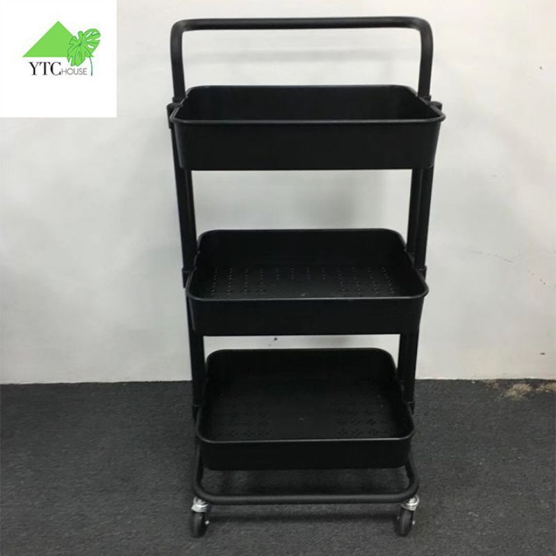 -Kệ 3 tầng được thiết kế đẹp mắt, có bánh xe đi chuyển và khóa bánh