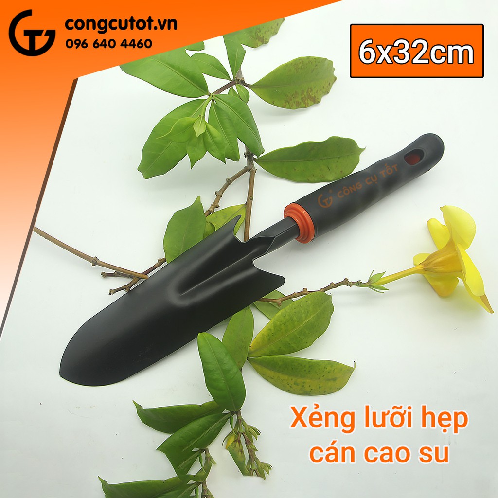 Xẻng đào đất trồng cây cảnh lưỡi hẹp cán cao su 6x32cm
