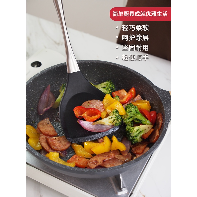 Xẻng Lật Đầu Silicon Thân Thép Không Gỉ Chịu Nhiệt Cao An Toàn Cho Sức KHỏe