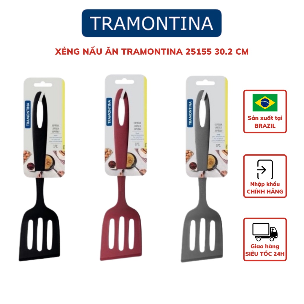 Xẻng nấu ăn Tramontina 25115 có khe chất liệu nhựa PA cao cấp ba màu 30.2 cm nhập khẩu chính hãng Brazil