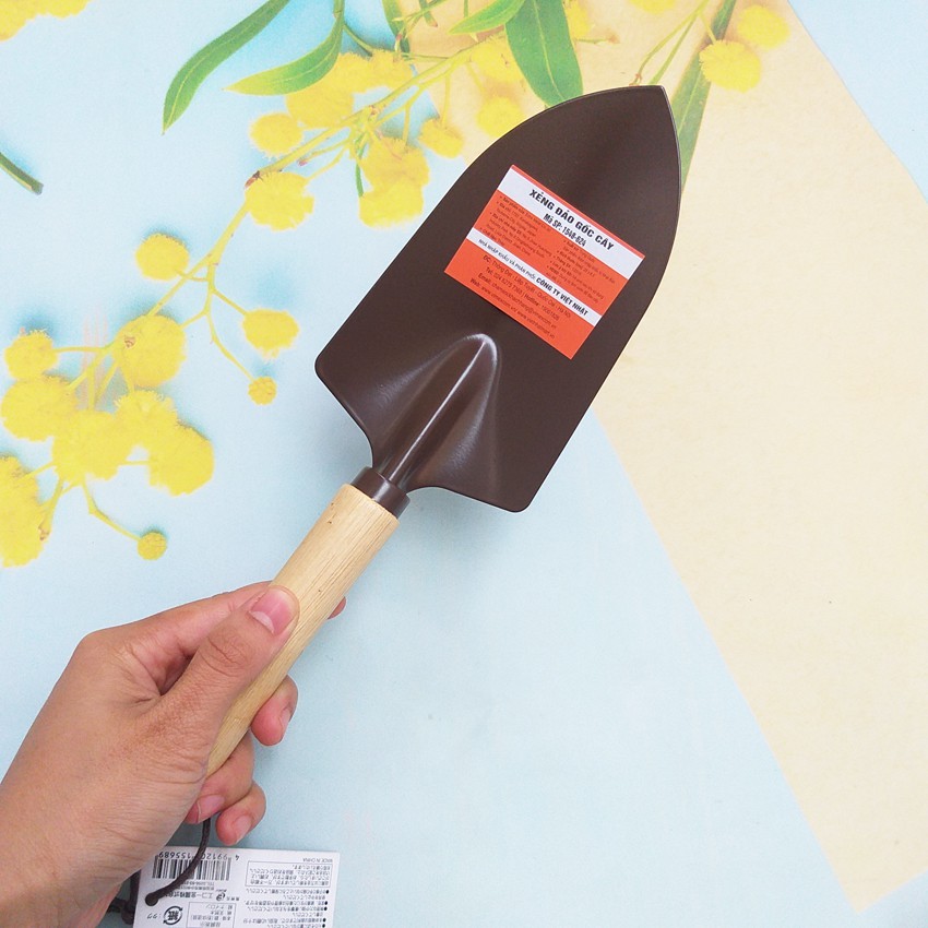 - Lưỡi xẻng bằng sắt, phủ sơn tĩnh điện, cán gỗ
