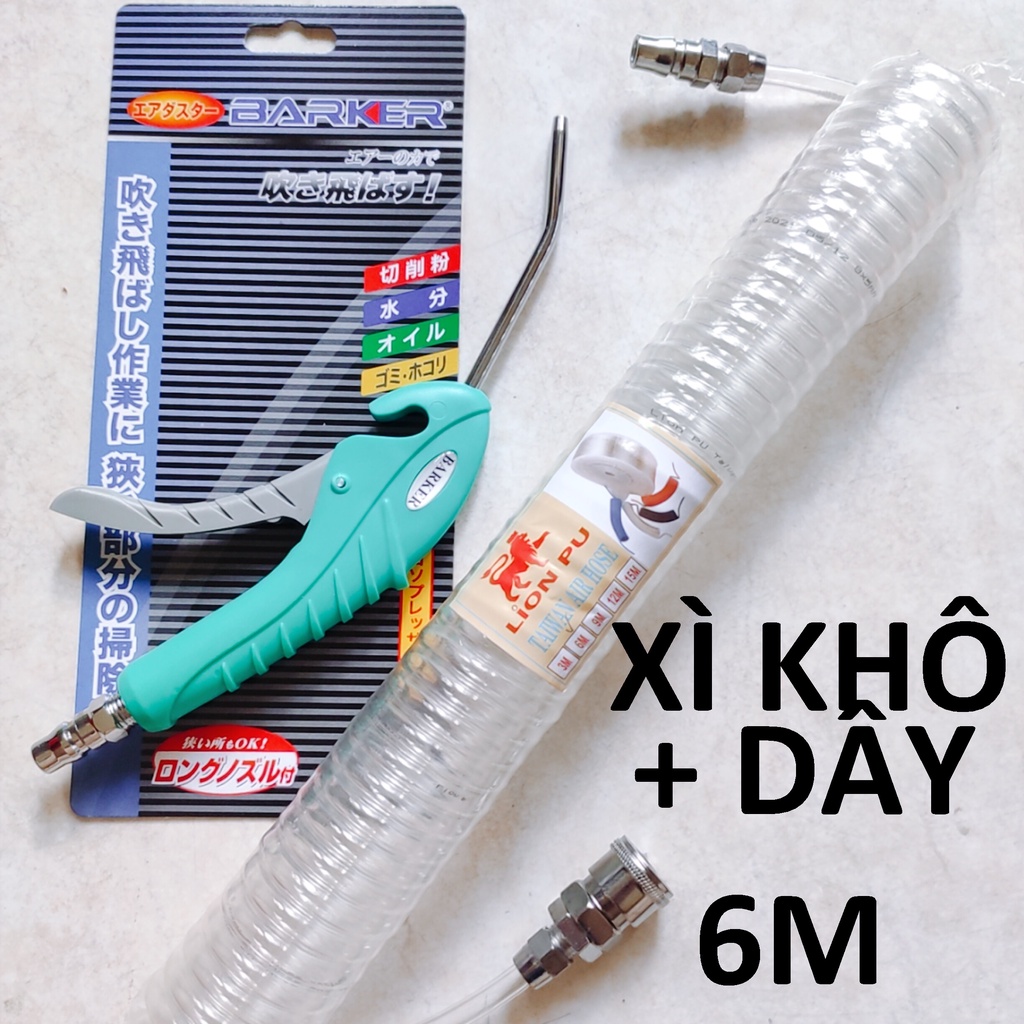 Giới thiệu xì khô Barker chính hãng + dây hơi 6m, súng xịt hơi thổi bui dùng khí nén