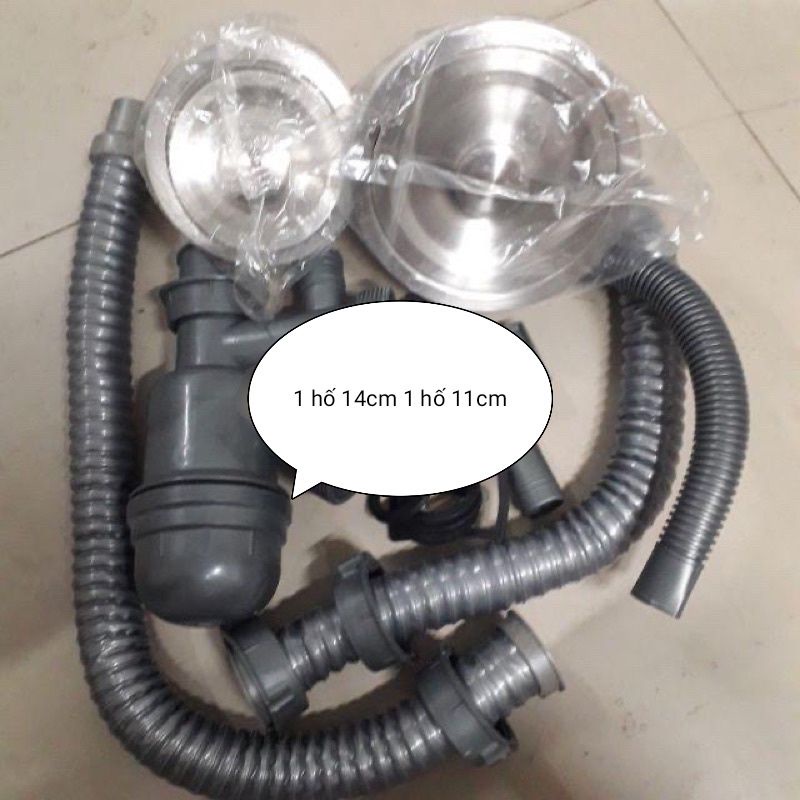 Xi phông chậu rửa bát đôi hố lệch 14cm và 11cm