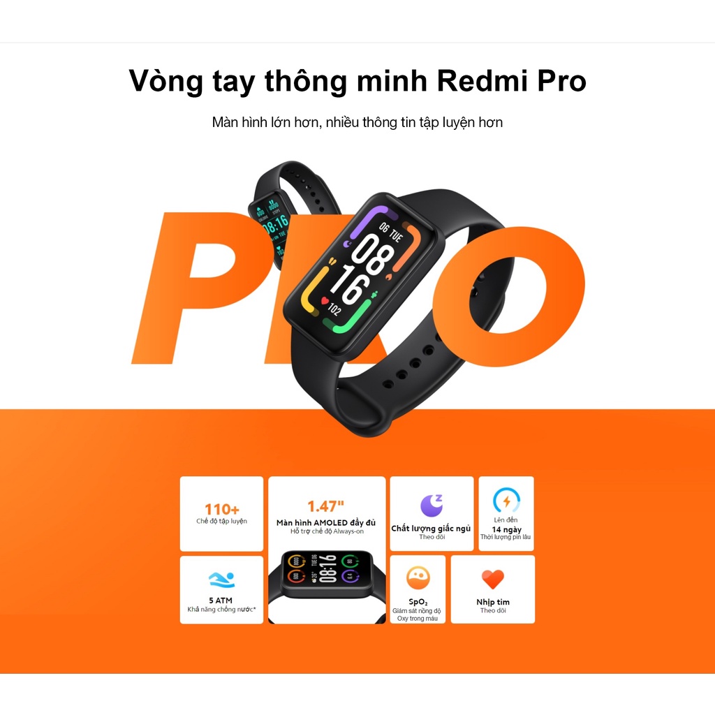 Xiaomi Redmi Smart Band Pro BHR5501GL Global Version có model M2101B1 là vòng đeo tay thông minh, màn hình lớn 1.47 inch, đo nồng độ oxy trong máu, đo nhịp tim, báo cuộc gọi, theo dõi giấc ngủ, khả năng kết nối thông minh qua app Xiaomi Wear Lite.