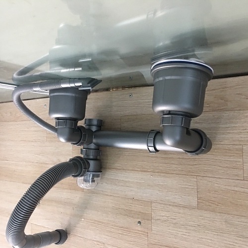Bộ xiphong dành cho chậu inox 2 hố bầu cốc lọc rác to đại