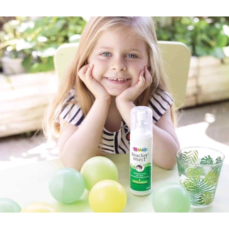 Thuốc xịt chống muỗi và côn trùng của Pediakid được chiết xuất từ các thảo mộc và dược liệu thiên nhiên. Bảo vệ bé và cả gia đình khỏi muỗi và các loại côn trùng. Pediakid là sự kết hợp giữa chiết xuất hoa cây phong lữ và các loại tinh dầu thiên nhiên có khả năng khử trùng và chống viêm như sả, trà, bạc hà, hoa oải hương, bạch đàn... Thuốc xịt muỗi có mùi hương dễ chịu, thân thiện với da, không gây nhờn rít.Người tiêu dùng có thể hoàn toàn yên tâm khi sử dụng sản phẩm xịt chống muỗi của Pediakid. Bởi những nguyên liệu hoàn toàn từ thảo mộc thiên nhiên ngay tại Pháp nên sản phẩm rất an toàn, lành tính. Có thể sử dụng sản phẩm cho trẻ em trên 3 tháng tuổi bởi sản phẩm được xếp vào dòng các sản phẩm hữu cơ an toàn.