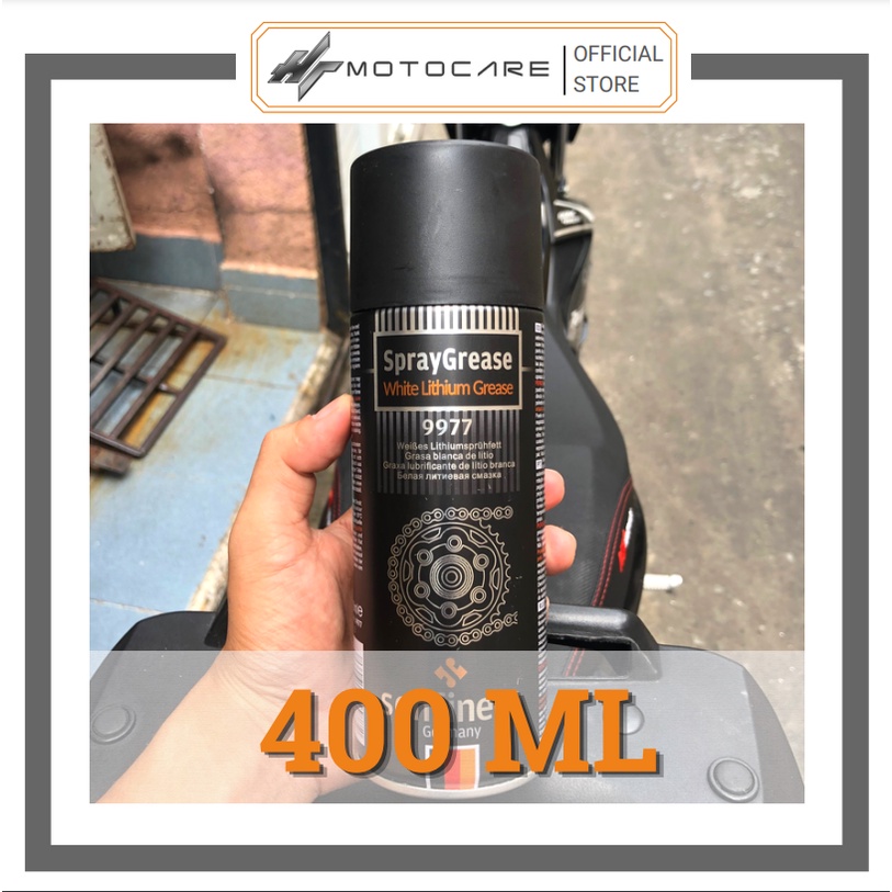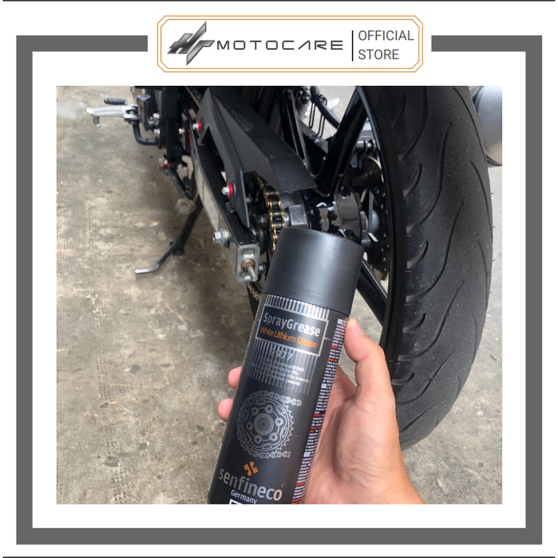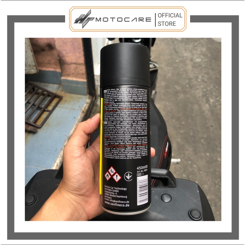 Ô tô > Dầu nhớt và phụ gia ô tô > Mỡ & Chất bôi trơn || Xịt dưỡng sên cao cấp SENFINECO 9977 chai 450ml mỡ bò trắng không văng lâu trôi HTMotocareCòn hàng
