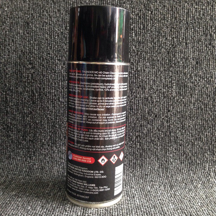 THUNDER MC-40 chain clear 400mlcó tác dụng bôi trơn nhanh chóng, dưỡng và bảo vệ sên hiệu quảTránh tình trạng hao mòn hay sên bị kêu