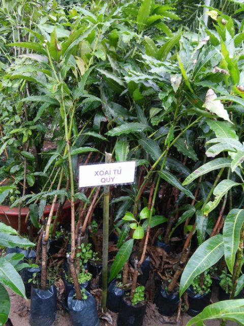 Cây xoài tứ quý cao 60-80cm, cây ghép dễ trồng, sinh trưởng nhanh, hiện nay phương pháp ghép cành hoặc chiết cành để nhân giống xoài tứ quý được sử dụng nhiều. Bởi cây con sẽ mang 100% tính trạng của cây mẹ, chúng sẽ phát triển nhanh và nhanh cho ra quả.Cây có thể trồng trên nhiều loại đất khác nhau, kể cả trên vùng đất cát giồng ven biển. So với các loại trái Cây Ăn Trái khác, Xoài này có lẽ là giống cây chịu úng tốt nhất. Rất ít khi thấy bịnh sâu đục thân trên loại Xoài này.