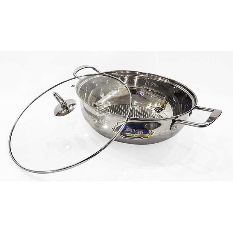 Tên sản phẩm : Chảo lấu cao cấp Inox RAIKA- Chất liệu Inox 430 dầy 0.7mm không bị rỉ, o-xy hóa đảm bảo an toàn cho sức khỏe.