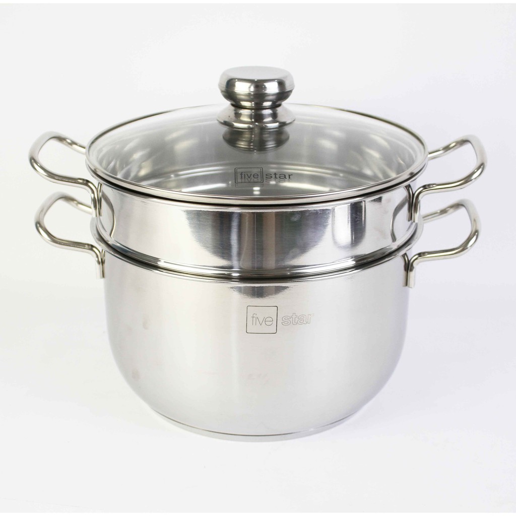 Nhà cửa & Đời sống > Dụng cụ nhà bếp > Nồi || Bộ xửng hấp 3 đáy inox 430 FiveStar Standard bếp từ nắp kính tặng 5 muỗng ăn ( 24cm )Còn hàng