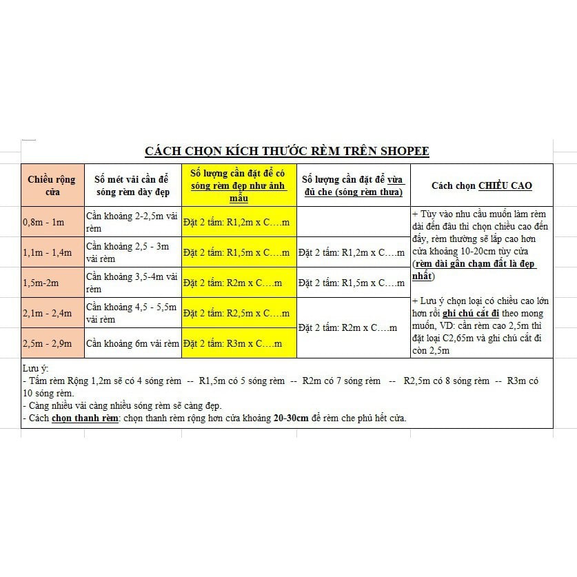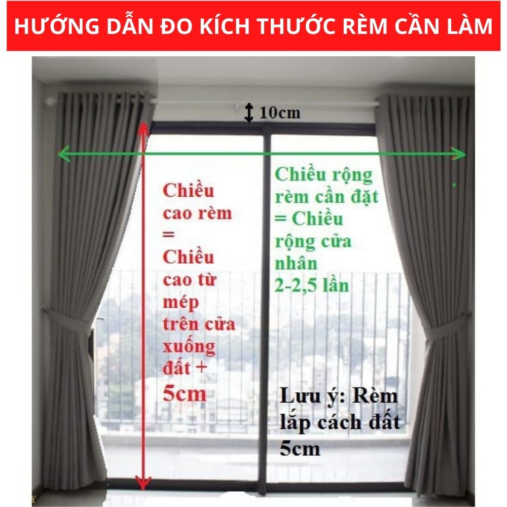 - Để cho rèm đổ sóng đẹp: các bạn vui lòng lựa Kích thước rèm 2 lần đến 2.5 lần Kích thước cửa ( ví dụ cửa ngang 1m thì chọn màn với kích thước từ 2 m).